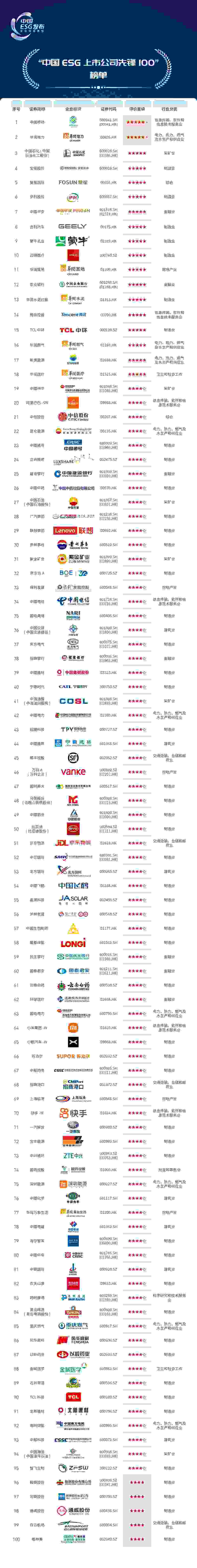 經(jīng)分析,中國移動、華潤電力、中國石化、寶鋼股份、復(fù)星國際、伊利股份、中國平安、吉利汽車、蒙牛乳業(yè)和邁瑞醫(yī)療等100家上市公司入選“中國ESG上市公司先鋒100”。