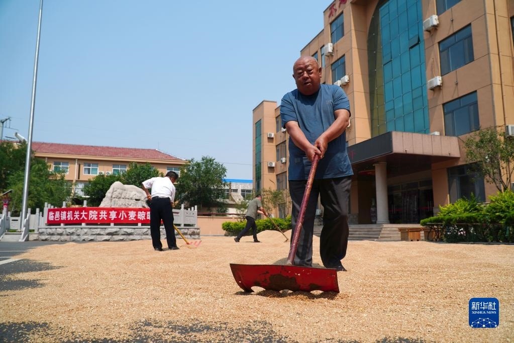 6月13日,農(nóng)戶在臨邑縣臨邑鎮(zhèn)政府大院曬糧。