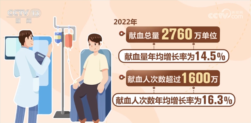 國家衛(wèi)生健康委相關(guān)負(fù)責(zé)人表示,我國無償獻(xiàn)血工作目前已形成了“政府主導(dǎo)、部門協(xié)作、社會支持、公眾參與”的格局,無償獻(xiàn)血制度全面建立,血液管理制度和規(guī)范標(biāo)準(zhǔn)體系不斷完善。全國建立了橫向到邊、縱向到底的血站采供血服務(wù)體系。全國共建設(shè)血站453家,形成以省級血液中心為龍頭、地市級中心血站為主體、中心血庫為補(bǔ)充的血站服務(wù)體系。我國血液安全保障水平大幅提升。全國無償獻(xiàn)血人次數(shù)和獻(xiàn)血量實(shí)現(xiàn)20多年持續(xù)增長,千人口獻(xiàn)血率由1998年的4.8提升至2022年11.5,2022年獻(xiàn)血總量2760萬單位,獻(xiàn)血量年均增長率為14.5%。2022年獻(xiàn)血人次數(shù)超過1600萬,獻(xiàn)血人次數(shù)年均增長率為16.3%。今年1—5月,獻(xiàn)血人次數(shù)和獻(xiàn)血量比去年同期增長7.7%和6%。