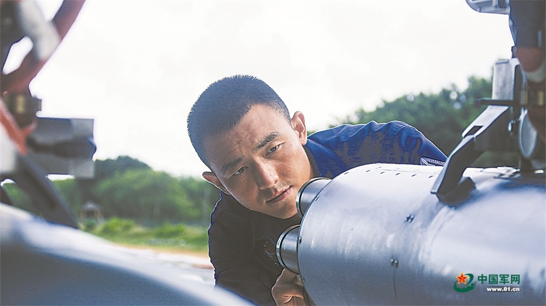 機務(wù)人員認(rèn)真檢查戰(zhàn)機。