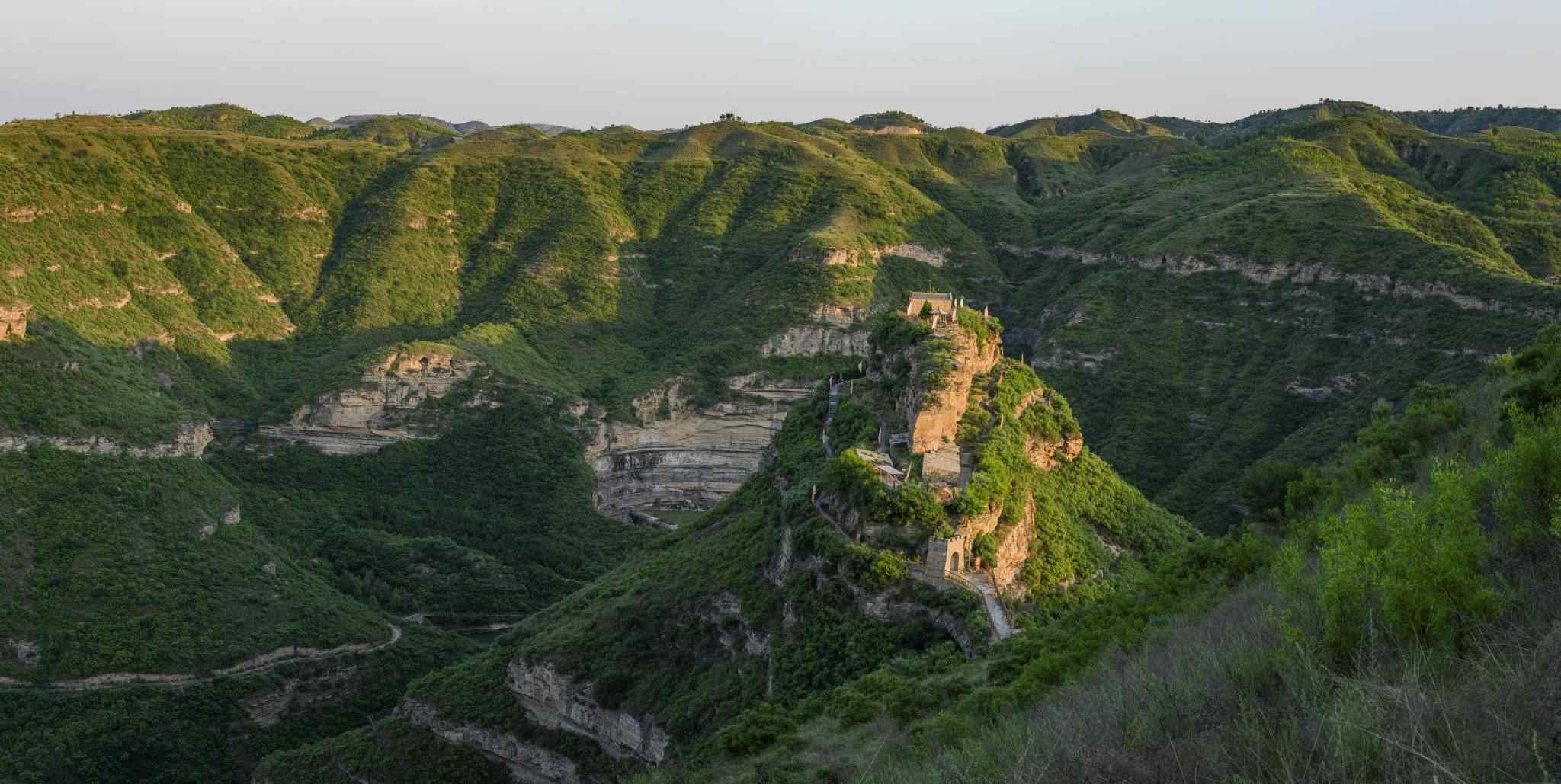 2023年6月14日,陜西省延安市,延川縣乾坤灣鎮(zhèn),晨曦映照會(huì)峰寨。視覺中國(guó)