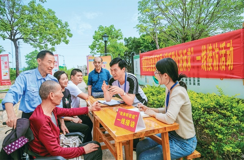 2023年5月24日,福建省莆田市城廂區(qū)紀(jì)委監(jiān)委在東海鎮(zhèn)大埔村開展“我聽群眾說訴求”一線接訪活動(dòng)。 求是圖片 吳震/攝