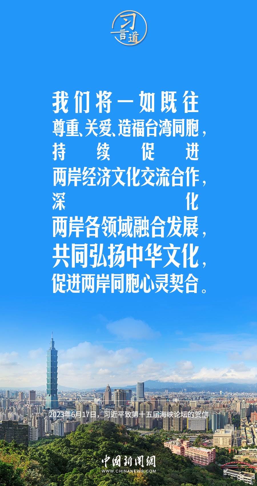 6月17日,中共中央總書(shū)記、國(guó)家主席習(xí)近平向第十五屆海峽論壇致賀信。習(xí)近平強(qiáng)調(diào)——