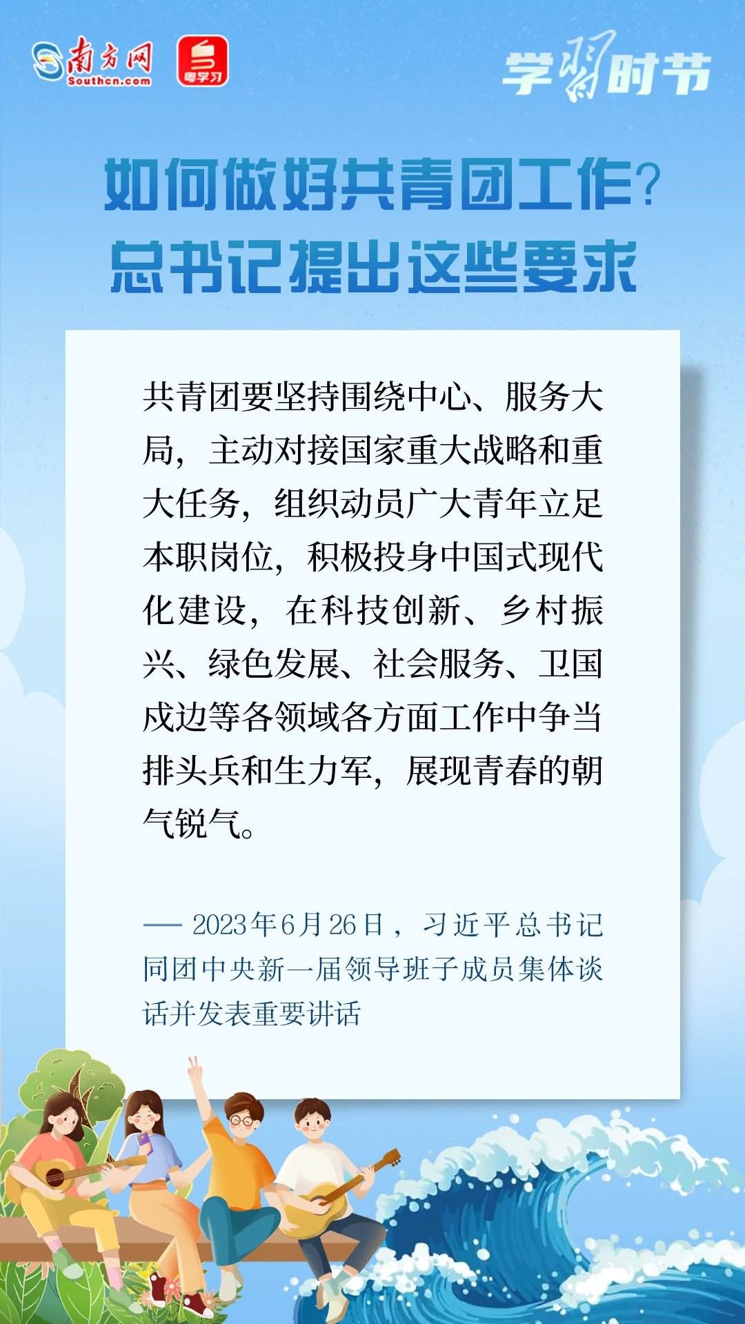 6月26日,習近平總書記同團中央新一屆領導班子成員集體談話并發(fā)表重要講話。總書記強調(diào),黨和國家事業(yè)的希望寄托在青年身上。希望共青團中央深入貫徹黨中央要求,切實肩負起新時代新征程黨賦予的使命任務,傳承弘揚優(yōu)良傳統(tǒng),堅持改革創(chuàng)新,更好把青年一代團結(jié)凝聚在黨的周圍,為推進強國建設、民族復興偉業(yè)接續(xù)奮斗。
