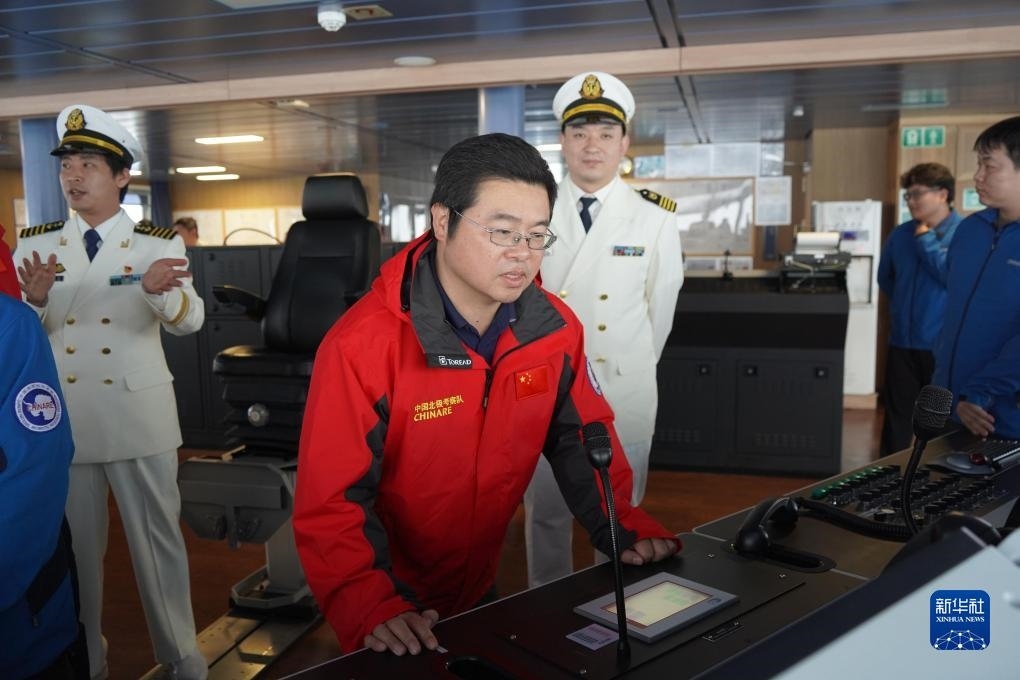 駕駛臺上,駕駛員持續(xù)大聲報告著緯度坐標與船時。船首兩側(cè),浮冰漸次碎開,“雪龍2”號平穩(wěn)而有力地前行,緩緩向北極點迫近。