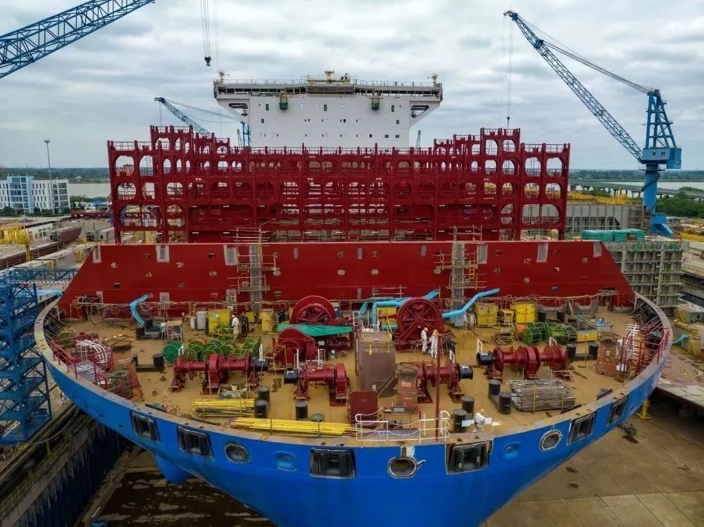“高端化”成鮮明標(biāo)識(shí)。近年來,中國高技術(shù)、高附加值船型建造交付數(shù)量大幅增加,部分技術(shù)領(lǐng)域更是打破國外壟斷。今年底,上海外高橋造船有限公司建造的中國首艘大型郵輪預(yù)計(jì)交付,屆時(shí)中國將集齊航母、大型液化天然氣(LNG)運(yùn)輸船、大型郵輪——造船工業(yè)“皇冠上的三顆明珠”。