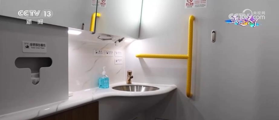動(dòng)車組的4號車廂為無障礙車廂,有無障礙衛(wèi)生間、輪椅存放區(qū),還有盲文標(biāo)識以及相應(yīng)的設(shè)施設(shè)備,為乘客提供無障礙出行服務(wù)。
