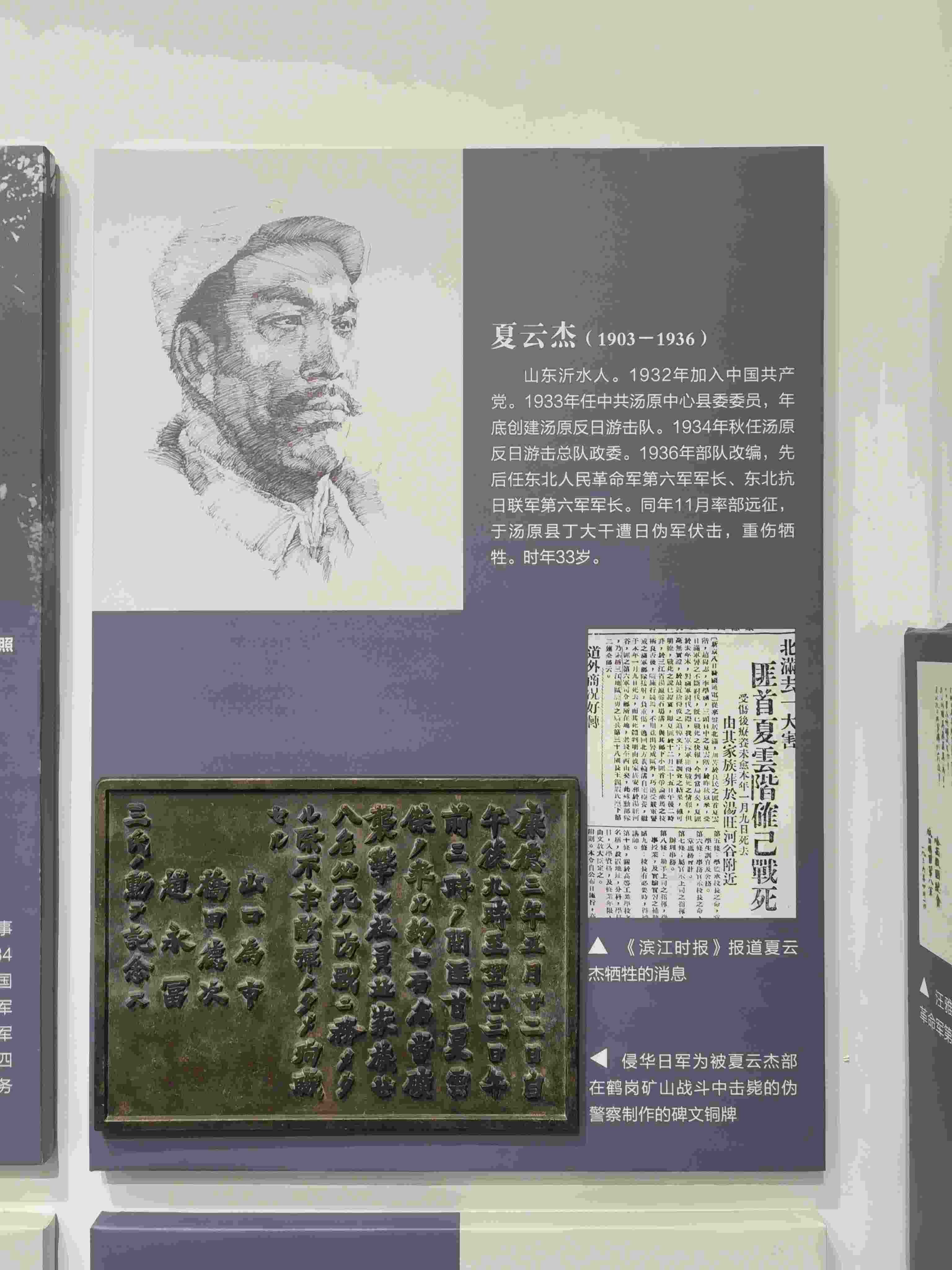 這塊碑文銅牌來自黑龍江鶴崗礦區(qū)的一座“忠靈塔”上,是日本侵略者為侵華戰(zhàn)爭中戰(zhàn)死的日偽軍而建。碑文銅牌,長51厘米、高36.5厘米、寬2厘米、重12千克。上面的文字記載了日偽軍和抗聯(lián)戰(zhàn)士戰(zhàn)斗過程。從表述內(nèi)容來看,這塊碑文具有極大欺騙性。它制造了普通百姓遭土匪襲擊的“無辜”假象,妄圖以此加深東北民眾與革命隊伍之間的對立情緒。而事實真相是,1936年5月22日夜,東北人民革命軍第六軍軍長夏云杰指揮六軍第一、二、三團,分兵兩路襲擊了鶴崗礦山。在我黨地下工作人員的密切配合下,順利解除了礦山警察二隊的全部武裝,并擊斃日軍指導官山口為市、橋田德次和偽礦山警察大隊隊長趙永富。這次戰(zhàn)斗繳獲敵人大批槍支彈藥,我軍無一人傷亡。23日凌晨,夏云杰率領部隊攜帶戰(zhàn)利品凱旋。