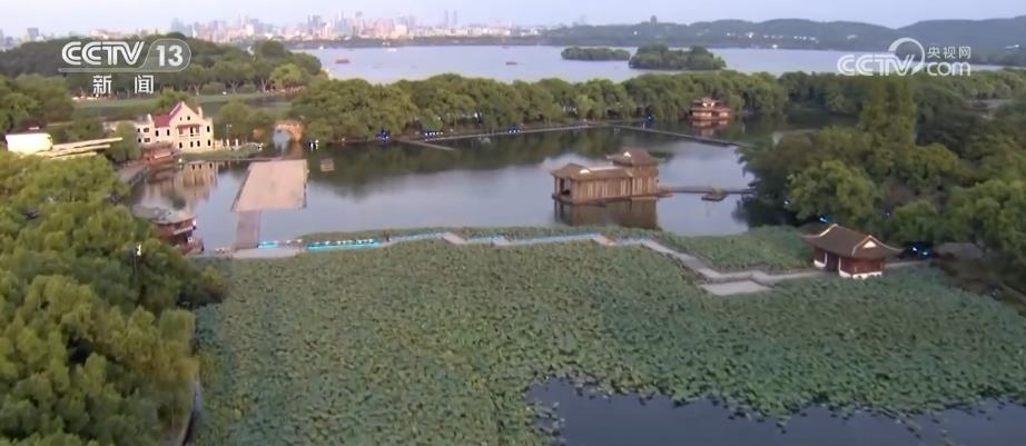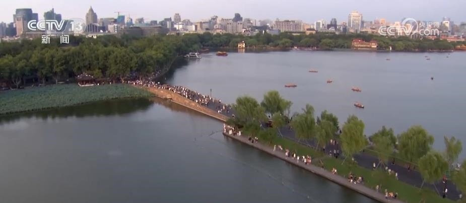 總臺記者 梁燁:說到浙江杭州,很多人第一印象就是西湖。雷峰塔是西湖南邊的最高塔,站在這里可以從南向北俯瞰到杭州西湖的全貌。