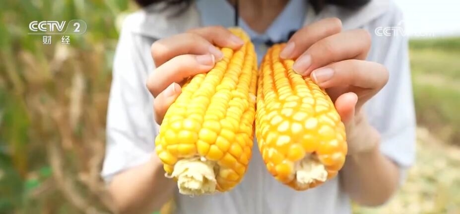 今年儲(chǔ)大姐家玉米長(zhǎng)得到底咋樣?你看我手里拿著這兩個(gè)玉米棒,左手就是儲(chǔ)大姐家的高密植玉米,右手是傳統(tǒng)種植的玉米,一對(duì)比很明顯,左手的玉米雖然看起來(lái)沒有傳統(tǒng)種植的個(gè)頭大,但是你看,籽粒長(zhǎng)到了頂,棒芯小籽粒更緊實(shí),分量更沉一些,可以說(shuō)它很精壯。儲(chǔ)大姐也告訴我,這片田的玉米單產(chǎn)今年能夠達(dá)到850公斤以上,比傳統(tǒng)種植玉米單產(chǎn)提高了整整200公斤。