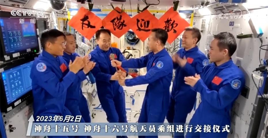 2023年6月2日 神舟十五號(hào) 神舟十六號(hào)航天員乘組進(jìn)行交接儀式