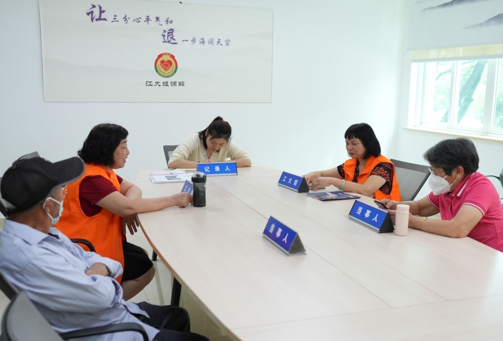 在浙江紹興諸暨市暨陽街道江新社區(qū)“江大姐”調(diào)解室,兩名調(diào)解員在為群眾進(jìn)行調(diào)解。這個調(diào)解工作室成員主要由女性組成,為周邊居民調(diào)解鄰里、家庭矛盾(2023年5月26日攝)。
