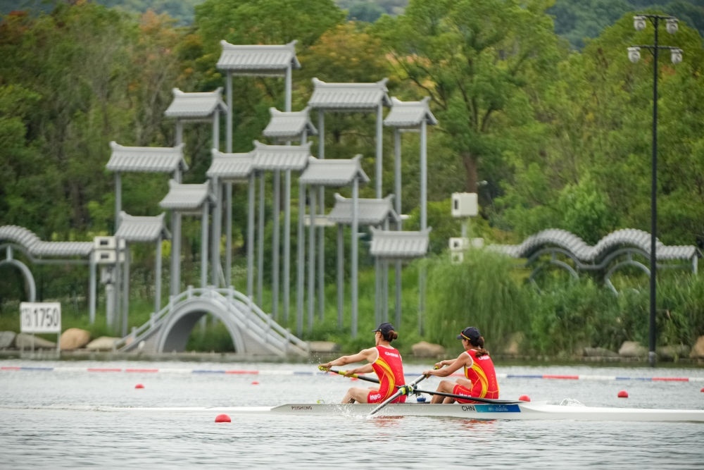 9月20日,杭州亞運(yùn)會(huì)賽艇項(xiàng)目預(yù)賽比賽在浙江省杭州市富陽(yáng)水上運(yùn)動(dòng)中心開賽。新華社記者 江漢 攝
