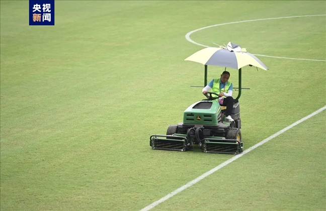 9月19日晚場(chǎng)比賽結(jié)束,運(yùn)動(dòng)員退場(chǎng)后,何東奇和草皮維護(hù)組的伙伴們立刻進(jìn)場(chǎng),開(kāi)始對(duì)整個(gè)場(chǎng)地的草坪進(jìn)行巡查修整。9個(gè)人一直工作到夜里12時(shí)多,完成了賽后草坪維護(hù)保養(yǎng)工作,“我回到駐地洗完澡休息已經(jīng)1:30了。”陳慶玉說(shuō)道。