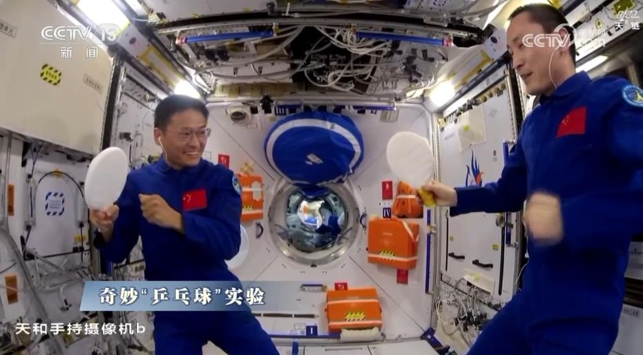 地面上的火苗到了太空,變成了小絨球;太空“乒乓球賽”專用水球,竟被一口吞掉,航天員真是一滴水也不浪費;大小鋼球?qū)ε?,動量守恒的定律?fù)習(xí)到了;還有網(wǎng)友說,我女兒說了,她長大也想當(dāng)航天員。