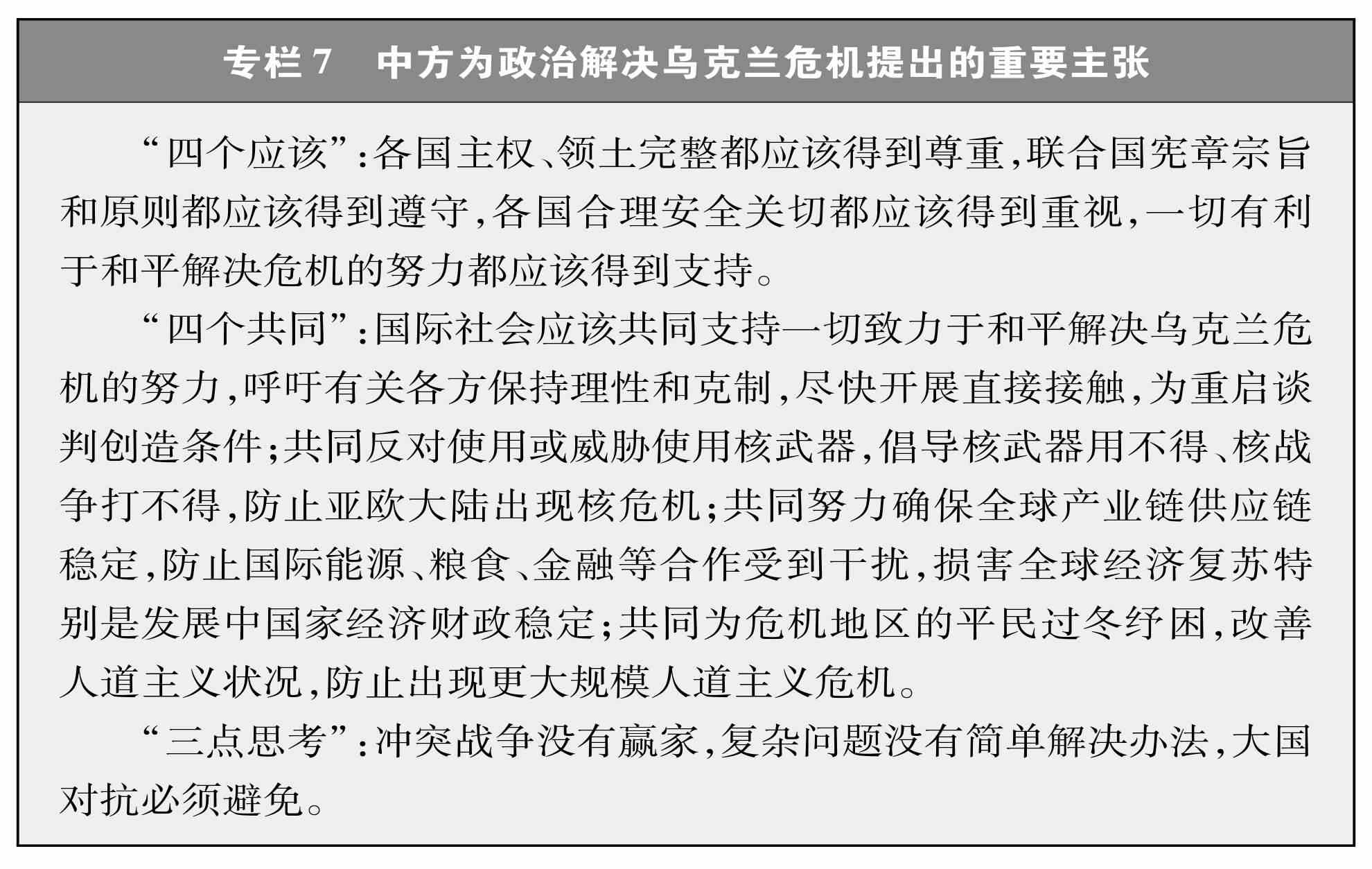 面對此起彼伏的熱點問題,中國始終致力于發(fā)揮負(fù)責(zé)任大國作用,推動朝鮮半島、巴勒斯坦、伊朗核、敘利亞、阿富汗等國際地區(qū)問題解決。在烏克蘭問題上,中方積極勸和促談,先后提出“四個應(yīng)該”“四個共同”“三點思考”的主張,發(fā)布《關(guān)于政治解決烏克蘭危機(jī)的中國立場》文件。派出中國政府歐亞事務(wù)特別代表,就政治解決烏克蘭危機(jī)同有關(guān)各方廣泛接觸和交流。在中國斡旋下,沙特和伊朗實現(xiàn)歷史性和解,為地區(qū)國家通過對話協(xié)商化解矛盾分歧、實現(xiàn)睦鄰友好樹立了典范,有力引領(lǐng)了中東地區(qū)“和解潮”。