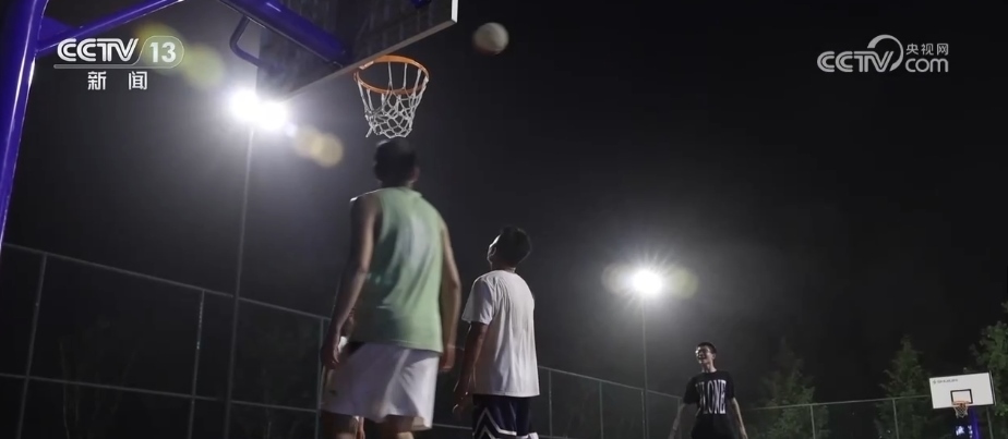 除了足球場(chǎng),村里還有一塊標(biāo)準(zhǔn)的籃球場(chǎng)。如果天氣好的話,這里幾乎每天晚上都有村民來這兒打球。