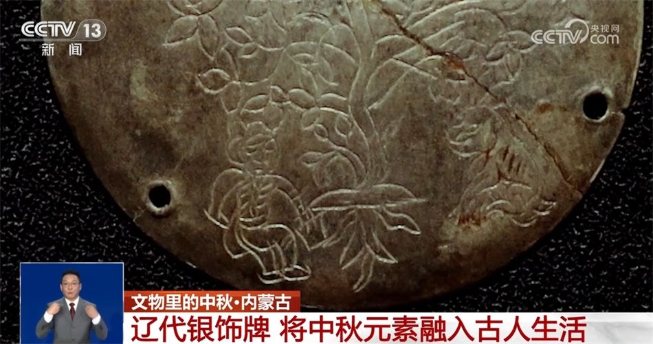 內蒙古文物考古研究院珍藏的這塊遼代月宮桂樹仙女銀飾牌,是服裝上的一種飾品,同樣鏨刻了桂樹、嫦娥和玉兔。