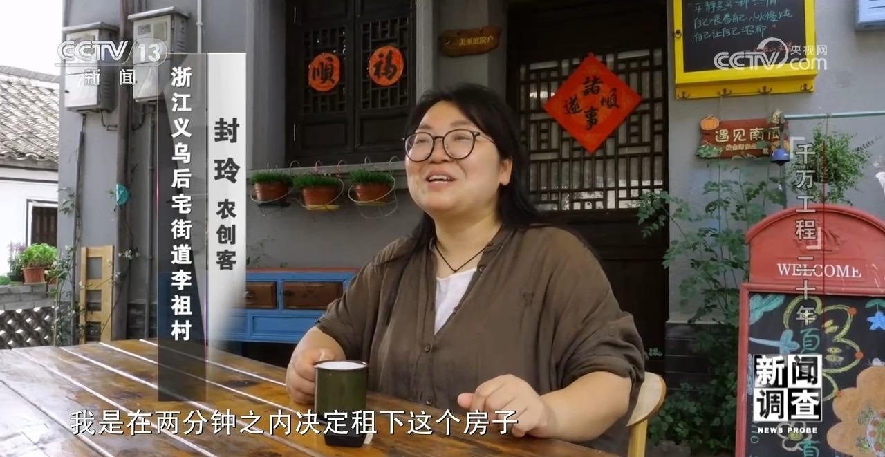 浙江義烏后宅街道李祖村農(nóng)創(chuàng)客 封玲:我是在兩分鐘之內(nèi)決定租下這個(gè)房子。當(dāng)時(shí)是沒(méi)有看到里面長(zhǎng)什么樣子,然后我就在那個(gè)下面看到這個(gè)樓梯,看到這種老房子,然后看到門(mén)口的梔子花樹(shù),我就說(shuō)就它了。
