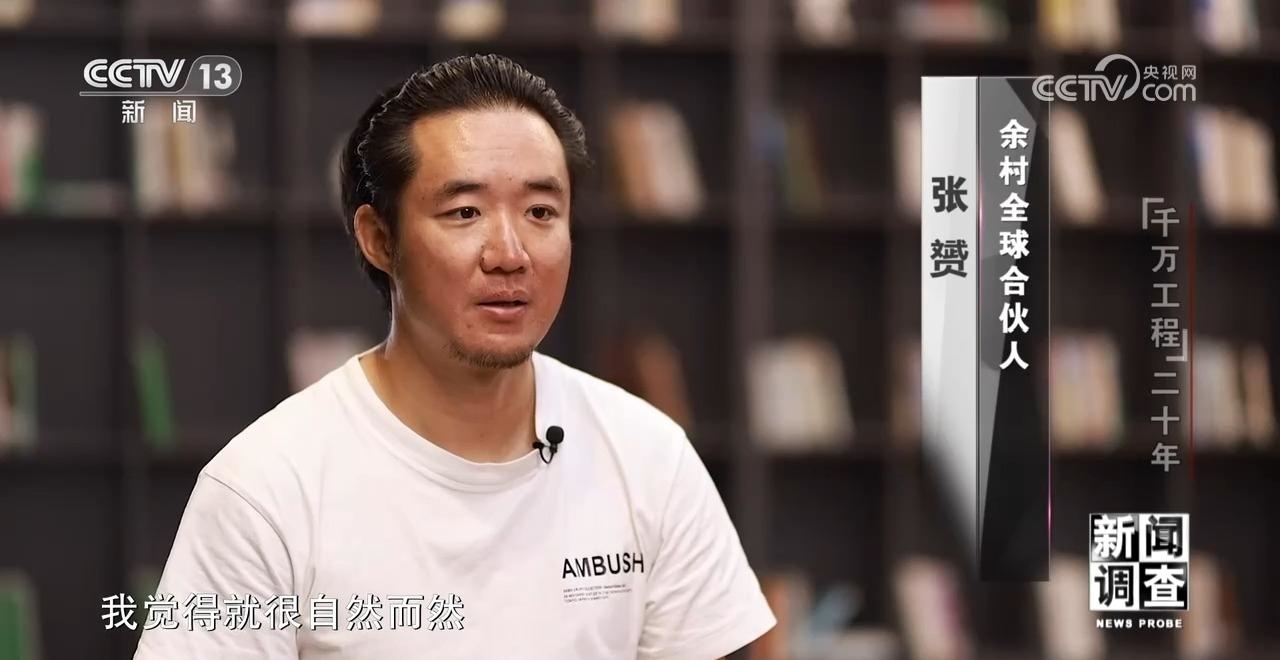 余村全球合伙人 張赟:我已經(jīng)覺(jué)得跟他們,就是跟寶哥也好,佳慧也好,我覺(jué)得就很自然而然。但是我的大腦還是會(huì)提醒我說(shuō),這其實(shí)挺有意義,因?yàn)槟阋徽f(shuō)你們?nèi)齻€(gè),我馬上意識(shí)到是原鄉(xiāng)人、歸鄉(xiāng)人、新鄉(xiāng)人。所以我覺(jué)得這是有意義,他們家和我其實(shí)是有一個(gè)互幫互助、共同成長(zhǎng)這樣一種框架在的。