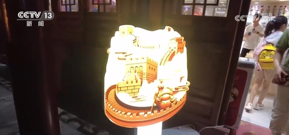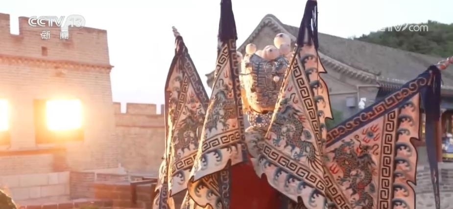 除了觀賞之外,八達(dá)嶺長(zhǎng)城還為游客提供了豐富的消費(fèi)體驗(yàn)。在文化街區(qū)里,正在上演《夢(mèng)回長(zhǎng)城,八方來鶴》為主題的演出,游客們可以和京劇、地方歌舞的表演者互動(dòng)。絢爛的燈光表演則為古老的長(zhǎng)城增添了不少現(xiàn)代感與時(shí)尚感。穿上漢服,買一面國旗,品嘗一下長(zhǎng)城的文創(chuàng)雪糕,市集小店里洋溢著濃濃的煙火氣。