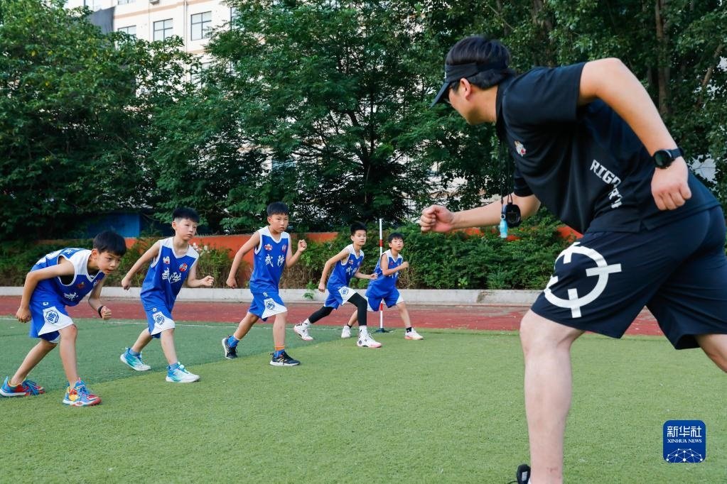 7月7日,在河南省焦作市武陟縣一家體育培訓(xùn)機構(gòu),教練指導(dǎo)學(xué)生練習(xí)跑步。