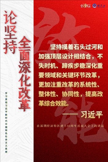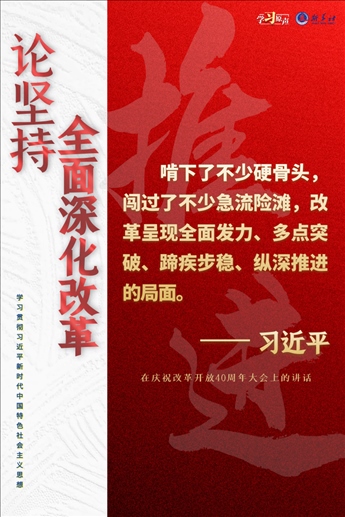 改革開放是決定當代中國命運的關(guān)鍵一招。黨的十八大以來,習近平總書記高舉改革開放旗幟,對全面深化改革提出一系列重要論斷、作出一系列戰(zhàn)略部署,創(chuàng)造性提出全面深化改革的總目標是完善和發(fā)展中國特色社會主義制度、推進國家治理體系和治理能力現(xiàn)代化。