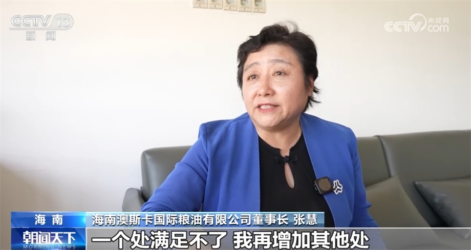 海南澳斯卡國際糧油有限公司董事長 張慧:就有一種熱情,能干成。實際上我已經60多歲了,之前已經退休了,但是為了自貿港,我說我還愿意再工作20年。