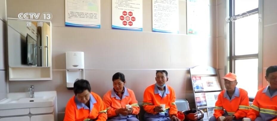 中午12時,東營市的最高氣溫升至38℃左右。在蒙山路一處專門為環(huán)衛(wèi)工人“量身打造”的休息室,環(huán)衛(wèi)工人們可以隨時到這里避暑納涼,休息室里有空調(diào)、冰箱、飲水機(jī)等各種設(shè)施。