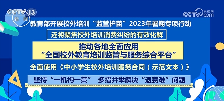 央視網(wǎng)消息:日前,教育部印發(fā)通知,決定于7月至8月在全國開展校外培訓(xùn)“監(jiān)管護(hù)苗”2023年暑期專項(xiàng)行動(dòng),將聚焦當(dāng)前校外培訓(xùn)治理中存在的隱形變異培訓(xùn)等方面問題,進(jìn)行全面排查治理。?