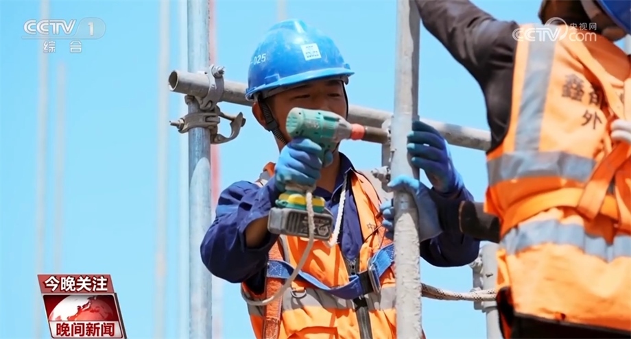 這是雄安新區(qū)容西片區(qū)安置房二期工程現(xiàn)場(chǎng),兩萬(wàn)多名工人正在這里戰(zhàn)高溫、搶工期。架子工的主要工作是搭建腳手架,工人需要長(zhǎng)時(shí)間在戶(hù)外高空作業(yè)。