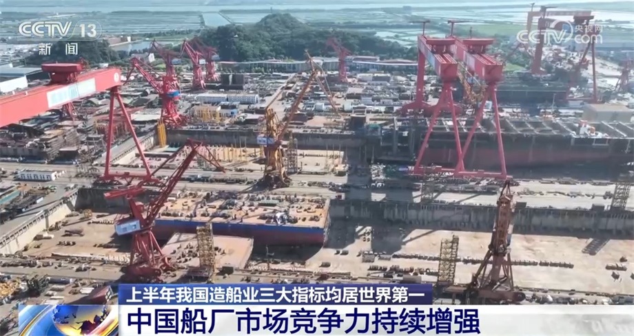 央視網(wǎng)消息:工業(yè)和信息化部今天(7月12日)發(fā)布我國(guó)造船業(yè)最新數(shù)據(jù),上半年我國(guó)造船業(yè)三大指標(biāo)均位居世界第一;新接訂單量的國(guó)際市場(chǎng)份額超過(guò)了70%,實(shí)現(xiàn)了我國(guó)造船業(yè)國(guó)際市場(chǎng)新接訂單量的新紀(jì)錄。?