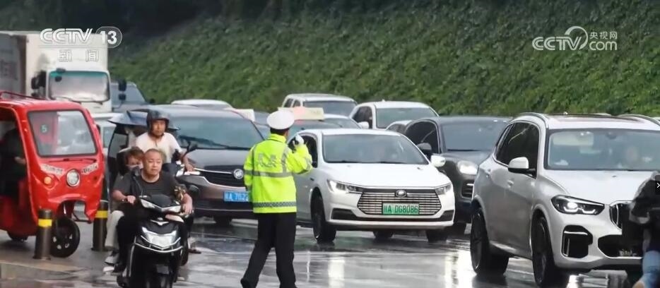 總臺記者 吳成軒:這里是西安曲江新區(qū)大唐芙蓉園西門的丁字路口,突如其來的降雨,大家可以看到,積水基本沒過我的腳踝。再過不到一個小時,這里即將迎來下班高峰期,再加上眼下正是暑假,很多游客來到西安旅游,接下來對于大家的通行都是一個不小的考驗。為了讓大家通行更加便利,我們看到,環(huán)衛(wèi)工人及時上路,對路段下水口進行清理,以便將積水排出。