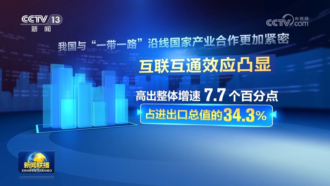 我國與“一帶一路”沿線國家產(chǎn)業(yè)合作更加緊密,互聯(lián)互通效應(yīng)凸顯,進(jìn)出口同比增長9.8%,高出整體增速7.7個百分點(diǎn),占進(jìn)出口總值的34.3%。