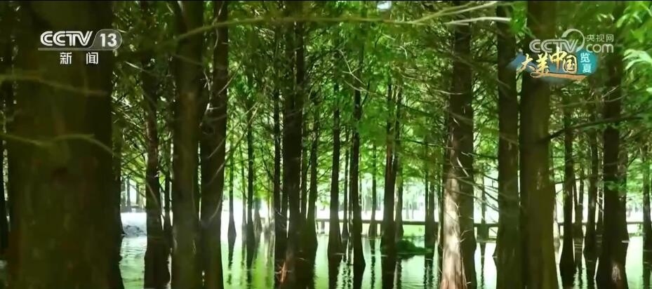 跟隨鏡頭,我們來到江蘇常州新龍生態(tài)林的“水上森林”,滿目蔥蘢、綠意蕩漾。5000多株水杉高大挺拔,陽光從樹林縫隙間灑落,樹下波光粼粼、層層疊疊,置身其中多了分沉靜和清涼。據(jù)了解,新龍生態(tài)林是一處再生水利用工程所在地,自建成運行以來,已累計分流凈化中水約2億噸,為保護長江常州水源地和節(jié)約城市用水作出貢獻。