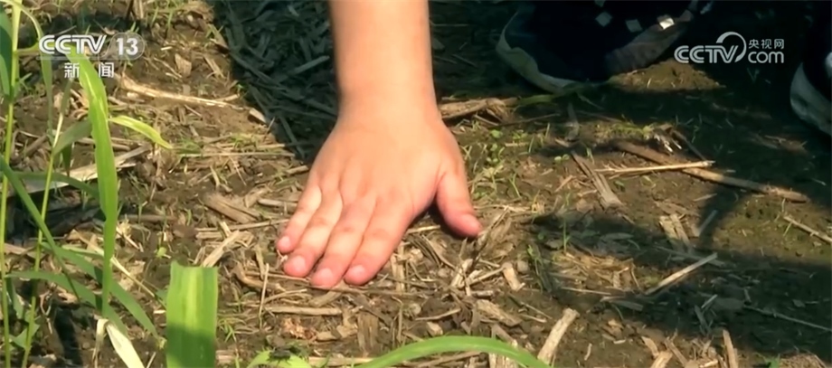 視角繼續(xù)向下來到地面。我們能夠看到田中有很多腐爛的秸稈,這就是當?shù)乇Wo性耕作的核心——秸稈還田。簡單說,就是每年秋收之后將秸稈留在田中,相當于給黑土地蓋上了一層“被子”,這樣一來風吹不走了、雨也帶不走了。傳統(tǒng)的耕作方式要先將秸稈離田、起壟、播種,農(nóng)機要多次下地,這里通過研發(fā)保護性耕作的配套農(nóng)機,將多個步驟歸為一步,同時采取免耕、少耕等辦法,最大程度減少對黑土地的破壞。