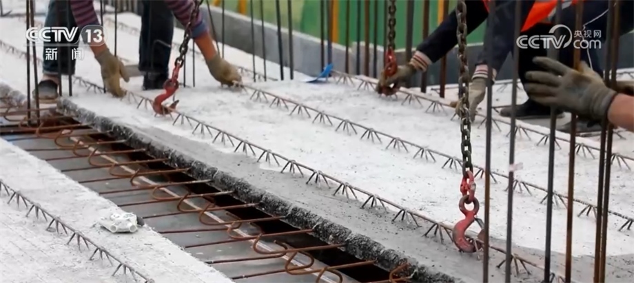 總臺(tái)央視記者 鄭怡哲:小時(shí)候很多人都玩過(guò)搭積木蓋房子的游戲,用標(biāo)準(zhǔn)化的零件就可以拼裝出一個(gè)完整的建筑結(jié)構(gòu)。而現(xiàn)在裝配式建筑的理念也越來(lái)越多地在樓房施工中得到應(yīng)用,我面前的樓梯就是一個(gè)提前在工廠里做好的預(yù)制件,按照以往的工藝,這樣的樓梯一層就需要一周左右的時(shí)間,現(xiàn)在一個(gè)小時(shí)以內(nèi)就可以完成安裝,而且可以立刻投入使用,讓施工的效率更上一層樓。