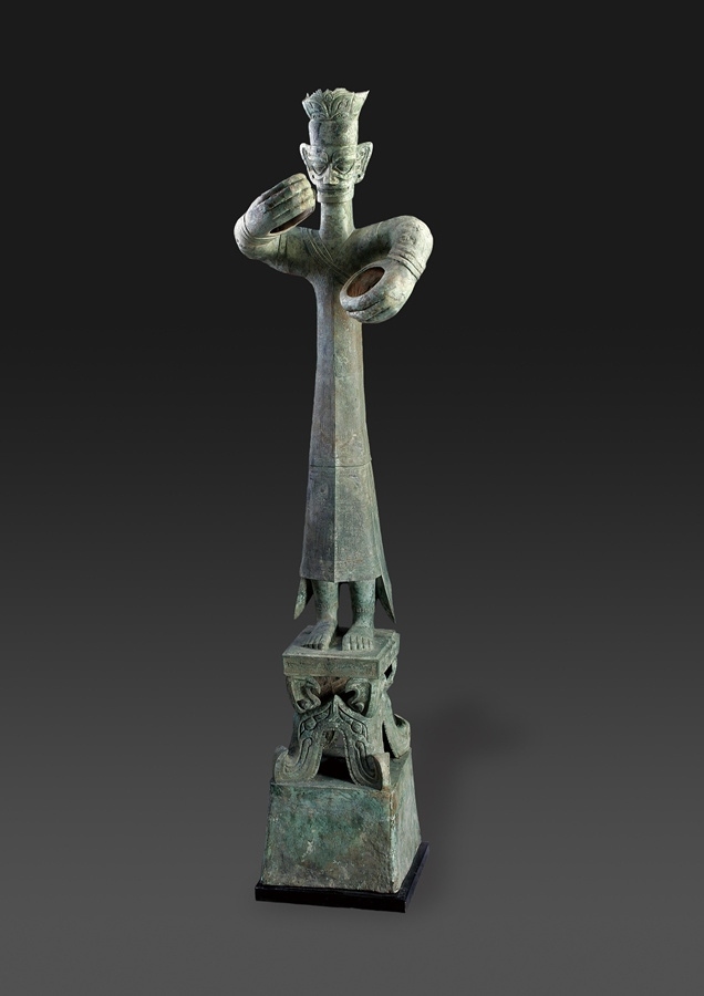 第二件三星堆的青銅大立人,高大、偉岸,彰顯王者威儀。