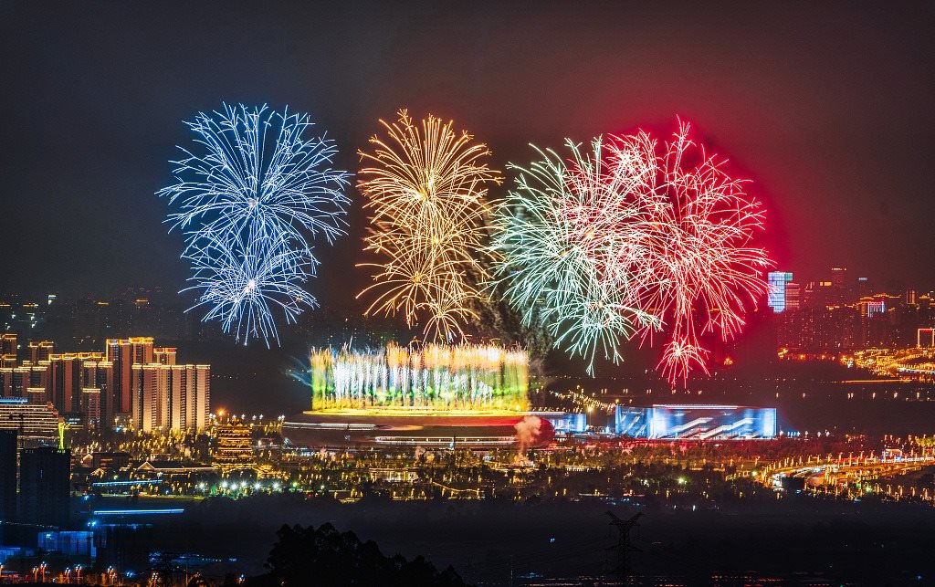 △2023年7月18日,成都大運(yùn)會(huì)開(kāi)幕式第一次帶焰火彩排。