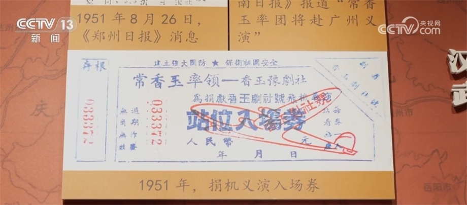 常香玉(生前采訪畫面):我說我要捐獻一架戰(zhàn)斗機,我要用我的演出、用我的本事、用我的力量、用我的血汗,捐獻一架戰(zhàn)斗機來保衛(wèi)我們的國家。