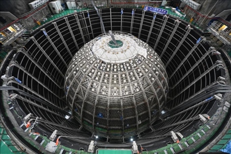 圖為江門中微子地下實(shí)驗(yàn)室中微子探測(cè)裝置。(中國科學(xué)院高能物理研究所供圖)