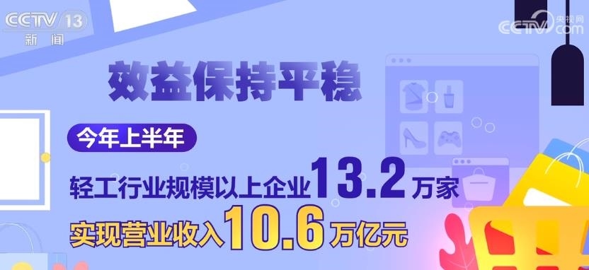 效益保持平穩(wěn)。今年上半年,輕工行業(yè)規(guī)模以上企業(yè)13.2萬(wàn)家,實(shí)現(xiàn)營(yíng)業(yè)收入10.6萬(wàn)億元,同比增長(zhǎng)2.1%,高于全國(guó)工業(yè)2.5個(gè)百分點(diǎn),實(shí)現(xiàn)利潤(rùn)5682億元。