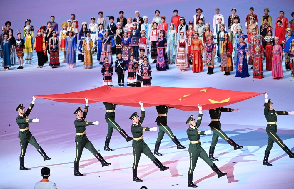 中國大學(xué)生體育代表團在開幕式上入場。