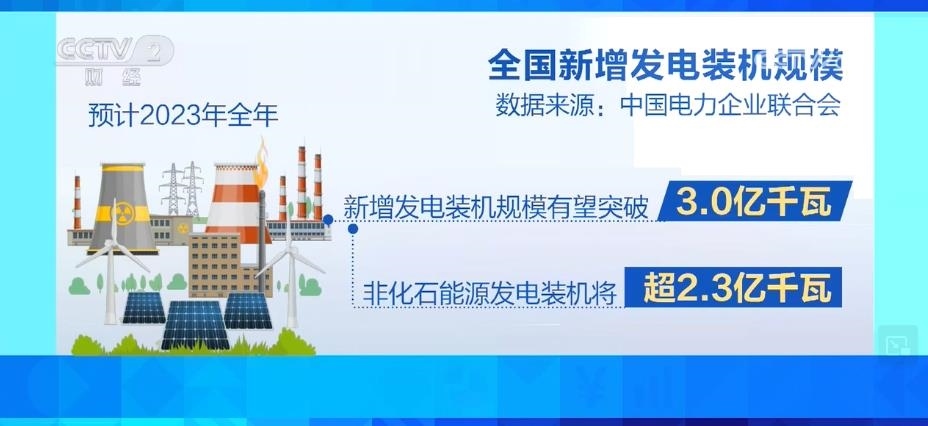 據預計,2023年全年,全國新增發(fā)電裝機規(guī)模有望突破3.0億千瓦,其中,非化石能源發(fā)電裝機將超過2.3億千瓦。到2023年底,全國發(fā)電裝機容量預計將達到28.6億千瓦,同比增長11.5%左右。其中,并網風電和太陽能發(fā)電合計裝機容量將達到9.6億千瓦,占總裝機的三分之一。