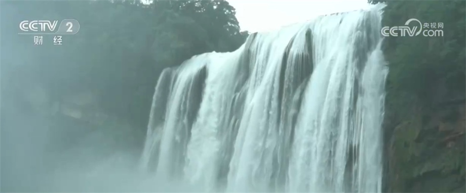 因為降水充沛,目前貴州黃果樹瀑布水流浩大,人氣爆棚,最近兩周,景區(qū)游客量從過去每天4萬人提高到了5萬人。