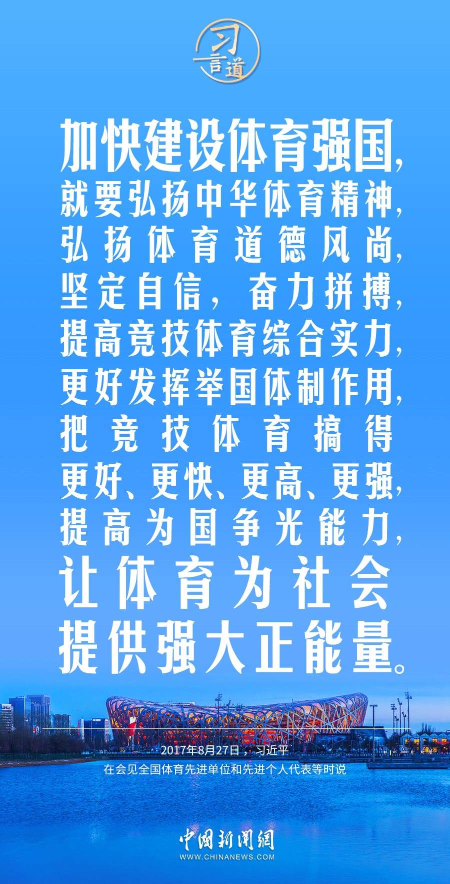 習(xí)近平總書記高度重視體育強(qiáng)國(guó)建設(shè),多次作出重要論述,強(qiáng)調(diào)讓體育為社會(huì)提供強(qiáng)大正能量。