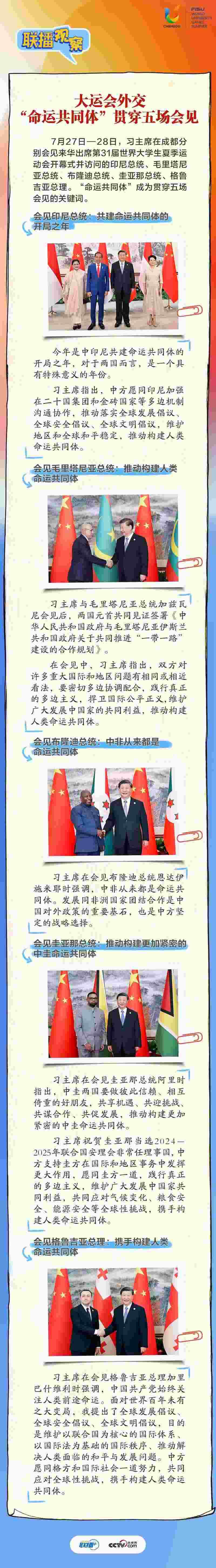 大運(yùn)會(huì)時(shí)間,我國(guó)重要的主場(chǎng)外交也同步拉開帷幕,習(xí)近平主席的日程格外繁忙。央視網(wǎng)《聯(lián)播+》帶您沉浸式感受這場(chǎng)青春盛會(huì)為世界送出的別具匠心的“四川禮物”。