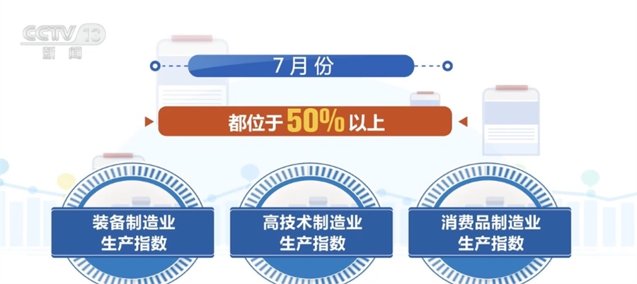 ?????? 國家統(tǒng)計局服務(wù)業(yè)調(diào)查中心二級巡視員 史朝暉:從具體的行業(yè)表現(xiàn)情況來看,7月份的石油煤炭加工、化學(xué)纖維及橡膠塑料制品,還有專用設(shè)備,鐵路、船舶、航空航天設(shè)備以及計算機(jī)通信電子設(shè)備,這些行業(yè)的生產(chǎn)指數(shù)和新訂單指數(shù)都是高于臨界點的,表明這些行業(yè)的產(chǎn)需兩端同步擴(kuò)張。
