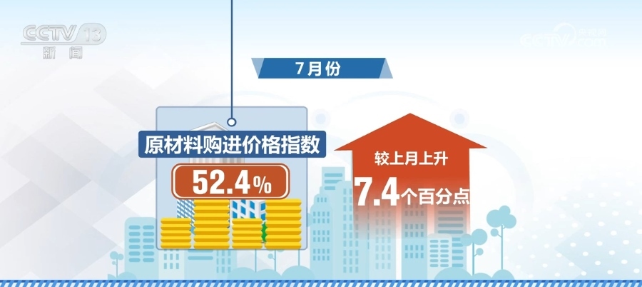 7月份,原材料購進(jìn)價格指數(shù)為52.4%,較上月上升7.4個百分點,結(jié)束了連續(xù)三個月運(yùn)行在50%以下的勢頭。制造業(yè)生產(chǎn)用原材料價格總體水平有所上升。