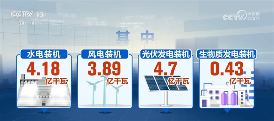 國家能源局發(fā)布的數(shù)據(jù)顯示,今年上半年,全國可再生能源新增裝機1.09億千瓦,同比增長98.3%,占新增裝機的77%。其中,常規(guī)水電新增并網(wǎng)206萬千瓦,抽水蓄能330萬千瓦,風電新增并網(wǎng)2299萬千瓦,光伏發(fā)電新增并網(wǎng)7842萬千瓦,生物質發(fā)電新增并網(wǎng)176萬千瓦。截至2023年上半年,全國可再生能源裝機突破13億千瓦,達到13.22億千瓦,同比增長18.2%,歷史性超過煤電,約占我國總裝機的48.8%,其中,水電裝機4.18億千瓦,風電裝機3.89億千瓦,光伏發(fā)電裝機4.7億千瓦,生物質發(fā)電裝機0.43億千瓦。